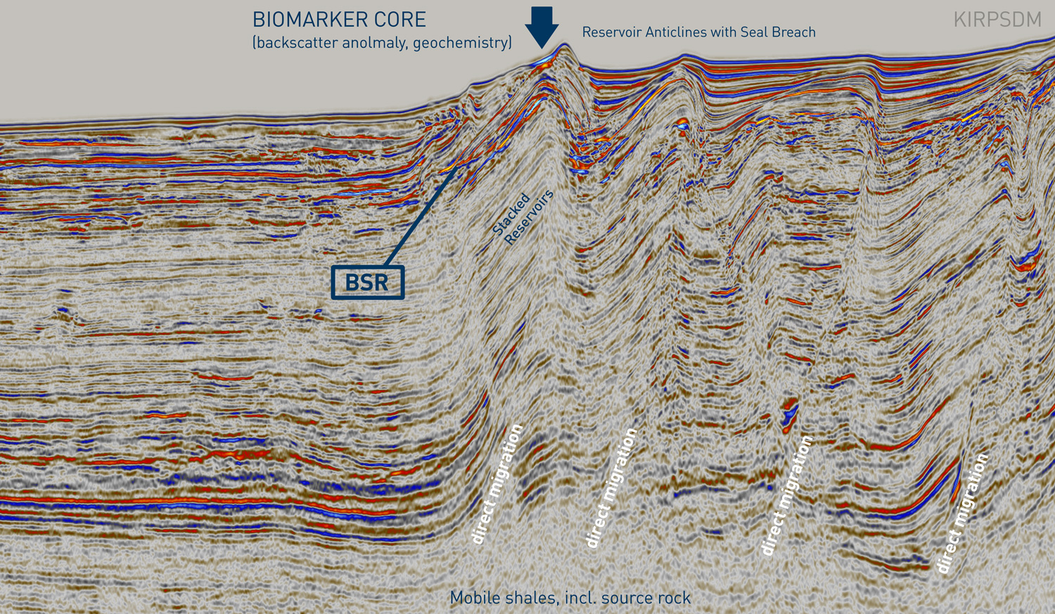 The geometry and timing of the toe thrust formation, which detached on a most likely over-pressured regional shale formation, allow substantial volumes to be charged downdip from the known discoveries and production locations.